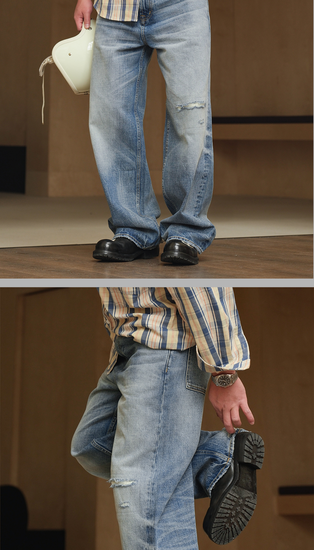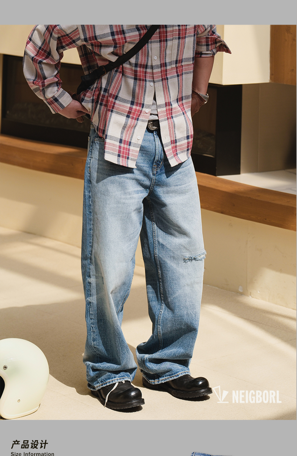 【Cambrian Period】 NEIGBORL Uncle Zhao's glacier blue washed old loose straight retro jeans