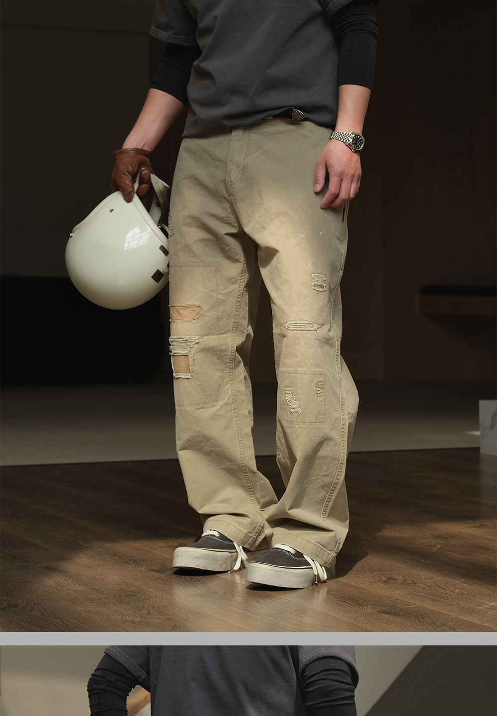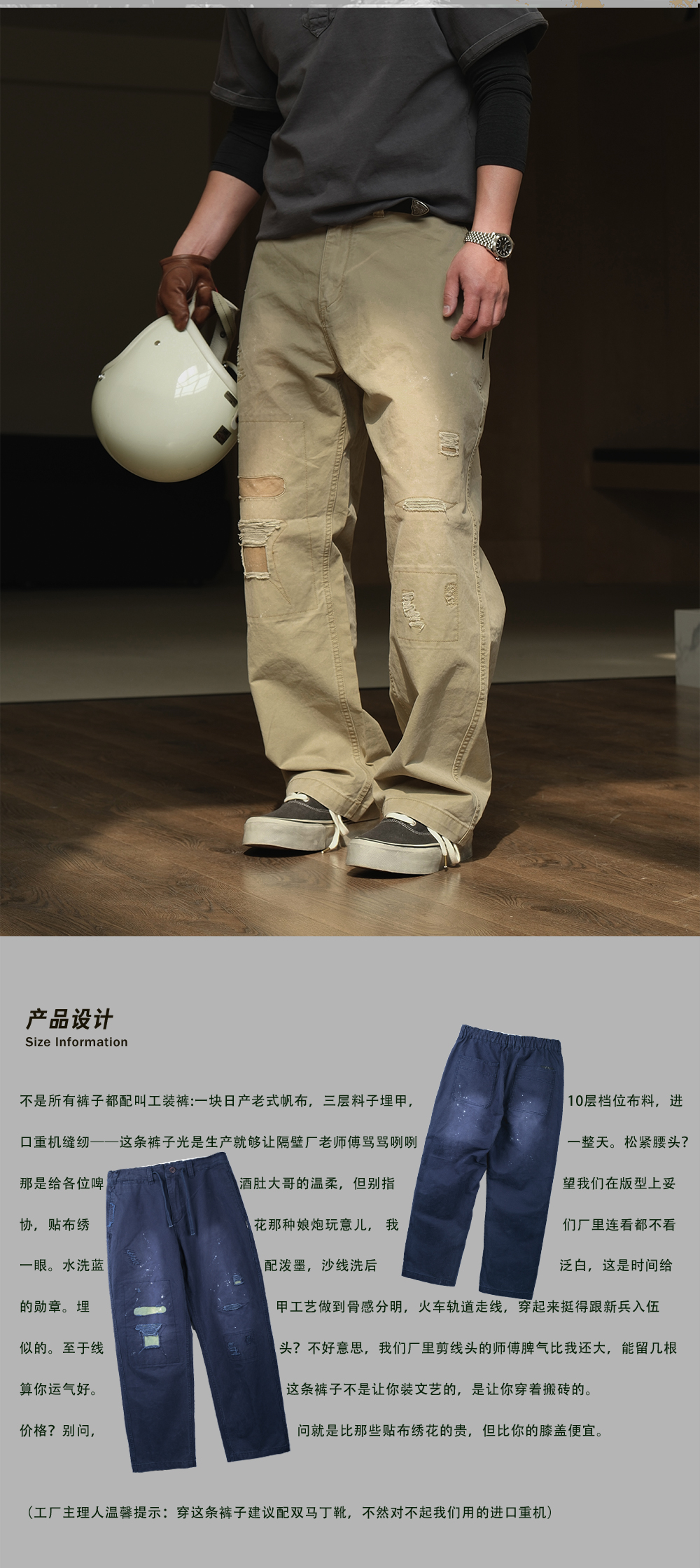 【Boundary monument】NEIGBORL ZHAOSHU'S HEAVY INDUSTRY WASHED CASUAL RETRO JAPANESE PATCH STRAIGHT TROUSERS