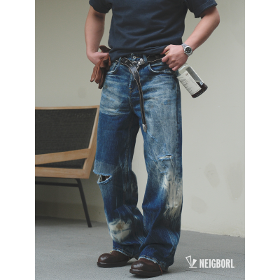 【Birds shit】NEIGBORL Uncle Zhao American Style Casual Men's Jeans 14 oz Blockbuster Bird Shit Style Pants