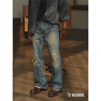 【The age of fathers】NEIGBORL Uncle Zhao's Vintage Flare Cold Dyed Old Cat Beard Hole Jeans