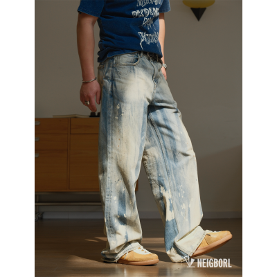 【Aurora】NEIGBORL Uncle Zhao's washed straight ink splash loose casual American retro jeans